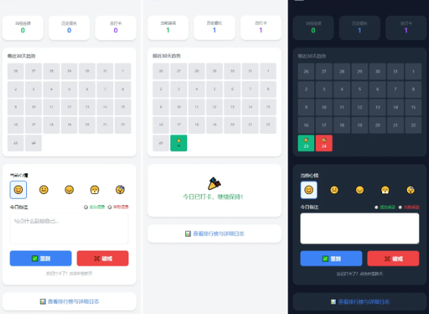 戒了么是一个轻量、纯 PHP 的每日戒色签到程序,面向正在自律、挑战欲望的年轻人,无需用户中心,通过本地数据库保存数据 记录每日签到状态功能特性每日签到(同一天只能签到一次)连续戒色天数统计(断签即清零)30 天挑战成就上限打卡必须填写备注...